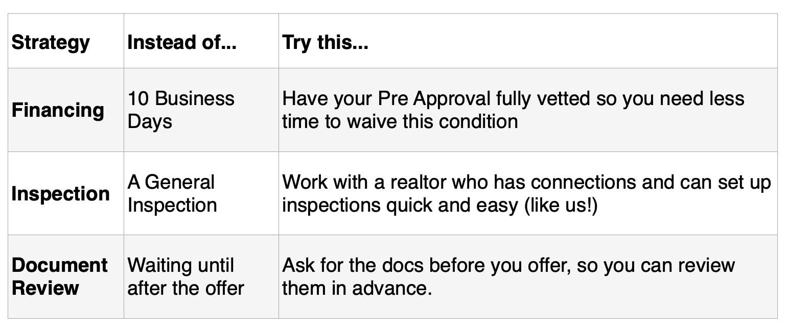 Write an offer on Friday that includes a full suite of conditions.